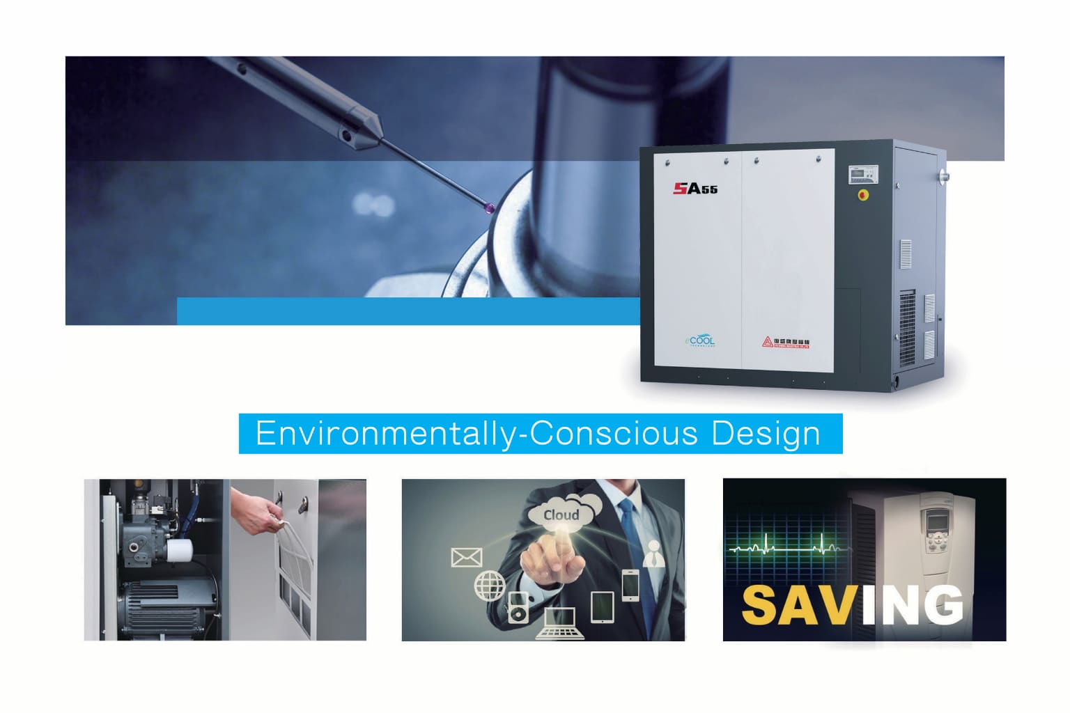 Ngoài dòng cố định, Fusheng còn cung cấp SAV Series (Variable Speed) cho dải 22–250kW.