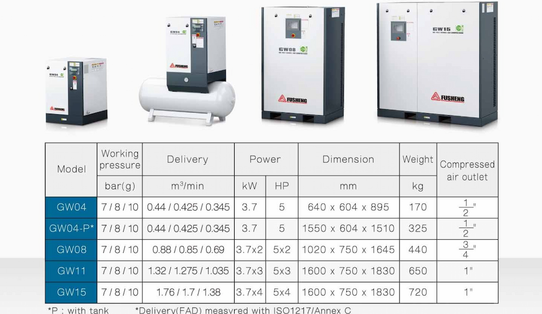 2. Tổng quan về máy nén khí không dầu Fusheng GW Series