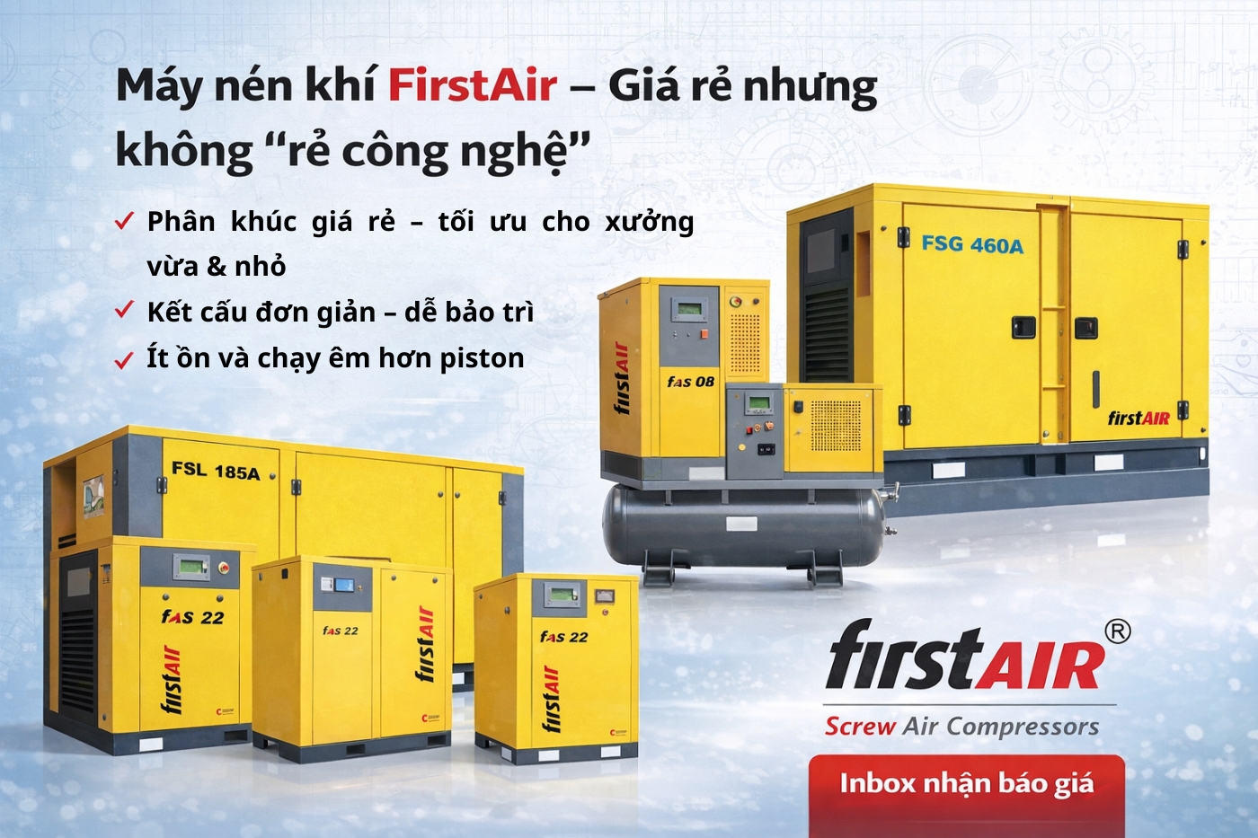 FirstAir không chỉ là máy giá rẻ — mà là giải pháp khí nén chất lượng cho sản xuất lâu dài! FUSHENG VIỆT NAM